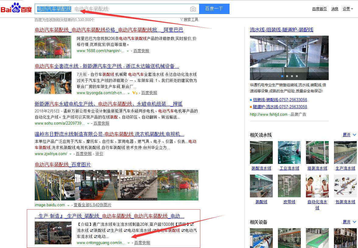 “電動車裝配線”百度首頁第一名,請看下方截圖 ,“電動車流水線”,“電動汽車流水線”,“電動汽車裝配線”,等等,很多關(guān)鍵詞都在百度首頁,請看如下截圖,有圖為證。在此特意感謝臺州SEO(通盛網(wǎng)絡(luò))人員為我公司網(wǎng)站所做的付出與努力